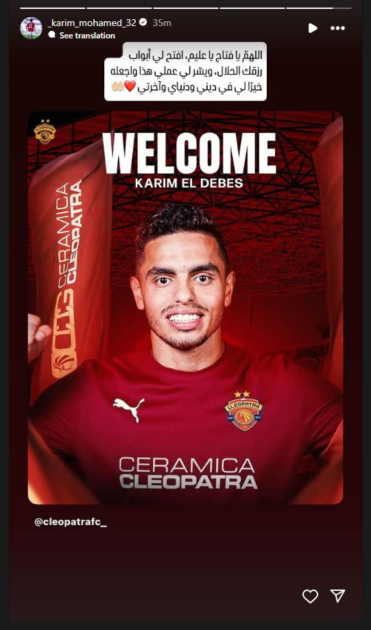 وكتب كريم الدبيس في رسالته عبر ستوري إنستجرام، شكراً من القلب لجمهور الأهلي العظيم على كل الحب والمساندة، كنت فخور بوجودي وسطكم وأنا واحد منكم وأهلاوي طول عمري.