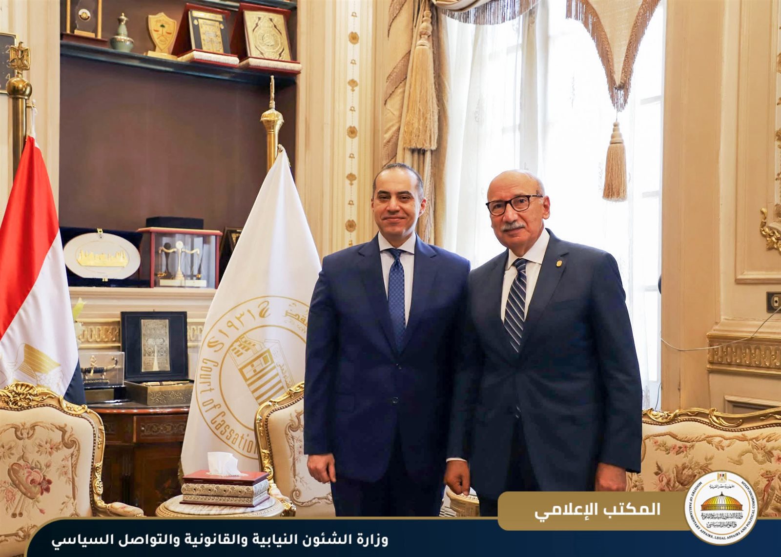 المستشار محمود فوزي وزير الشئون النيابية والقانونية والتواصل السياسي يلتقي المستشار عاصم الغايش رئيس محكمة النقض ورئيس مجلس القضاء الأعلى لتهنئته بالمنصب