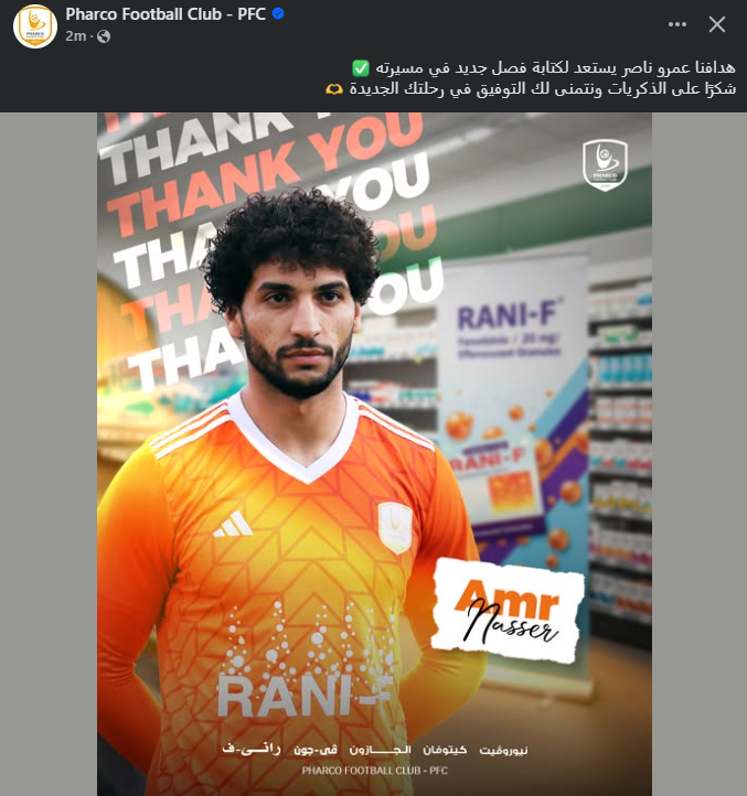 تحيا مصر، وكتب الحساب الرسمي لنادي فاركو عبر فبس بوك:" هدافنا عمرو ناصر يستعد لكتابة فصل جديد في مسيرته، شكرًا على الذكريات ونتمنى لك التوفيق في رحلتك الجديد".