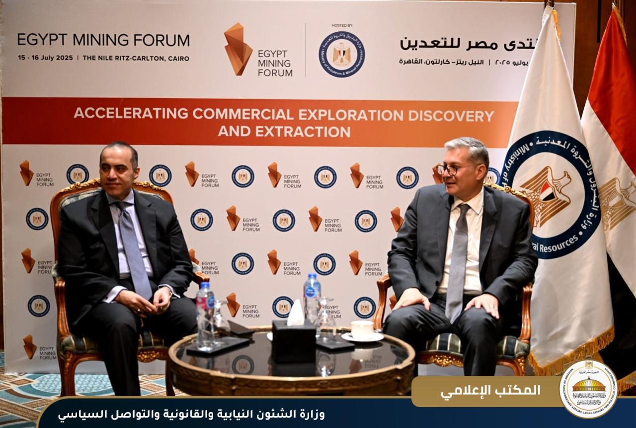 المستشار محمود فوزي وزير الشئون النيابية والقانونية والتواصل السياسي يشهد افتتاح وزير البترول والثروة المعدنية فعاليات الدورة الرابعة من منتدى مصر للتعدين EMF
