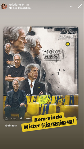 وكتب كريستيانو رونالدو عبر ستوري إنستجرام مرحبا بمدربه الجديد وقال، مرحبا بك مستر خورخي خيسوس.