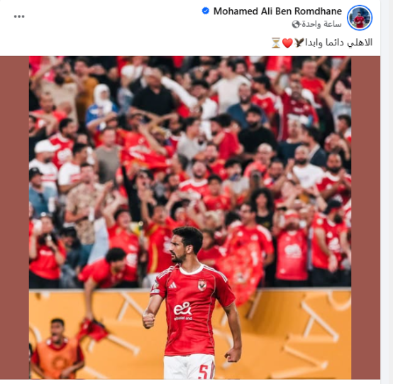 نشر التونسي محمد بن رمضان لاعب الفريق الأول لكرة القدم بالنادي الأهلي، رسالة يعبر فيها عن حبه للقلعة الحمراء.