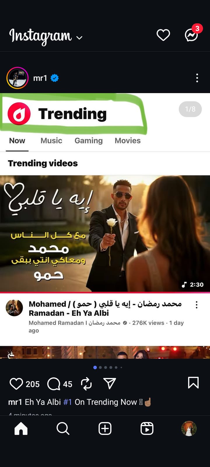 احتفل الفنان محمد رمضان منذ قليل بتصدر أغنية اي يا قلبي تريند موقع التدوينات الشهير يوتيوب، وذلك بعد يوم واحد فقط من طرحها، حيث تداولها الجمهور على حساباته بـ مواقع التواصل الاجتماعي المختلفة.