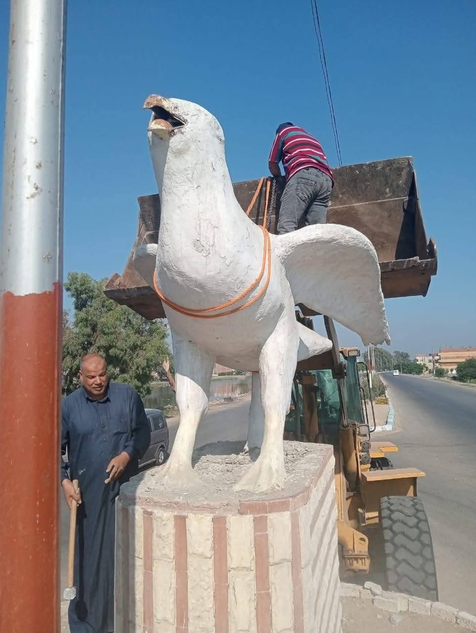 أثار مجسم ضخم لطائر الحمام باللون الأبيض، نُصب مؤخرًا في أحد ميادين مركز ومدينة التل الكبير بمحافظة الإسماعيلية، حالة واسعة من الجدل بين المواطنين. وسرعان ما أطلق عليه رواد مواقع التواصل الاجتماعي اسم "ميدان الحمامة"، وسط موجة من التفاعل والسخرية بسبب تصميمه اللافت وغير المألوف.