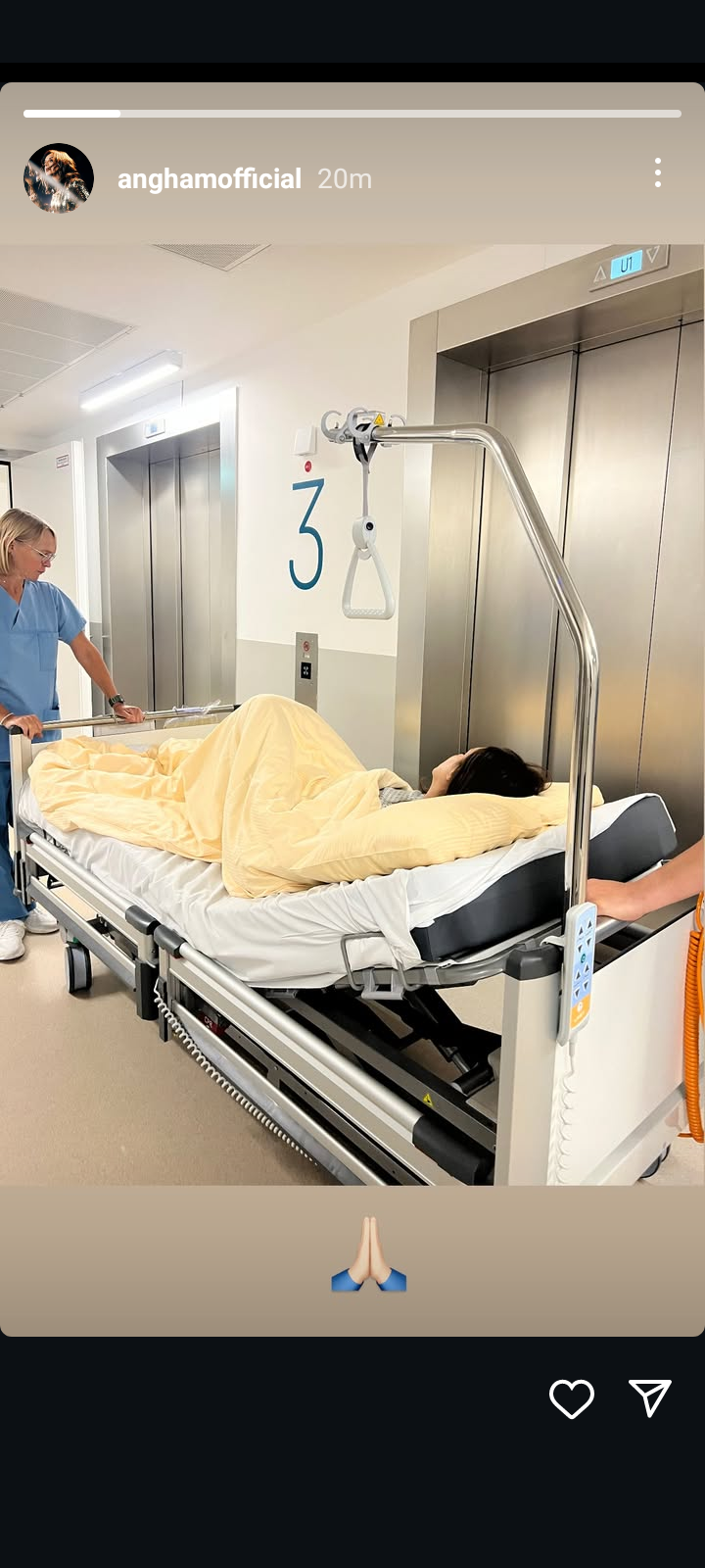 وظهرت انغام في الصورة التي رصدها موقع تحيا مصر على حسابها الرسمي بموقع تبادل الصور والفيديوهات انستجرام من خلال خاصية ستوري، وهي نائمة على سرير المستشفى وتجري بعض الفحوصات اللازمة على البنكرياس حيث تعاني من مشاكل منه وفقا لما صرح به المكتب الاعلامي الخاص بالفنانة.
