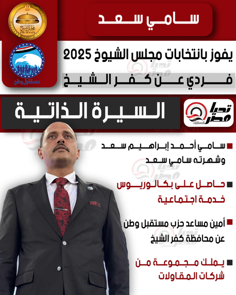 تحيا مصر ينشر السيرة الذاتية للنائب سامي سعد عضو مجلس الشيوخ بالنظام الفردي عن كفر الشيخ