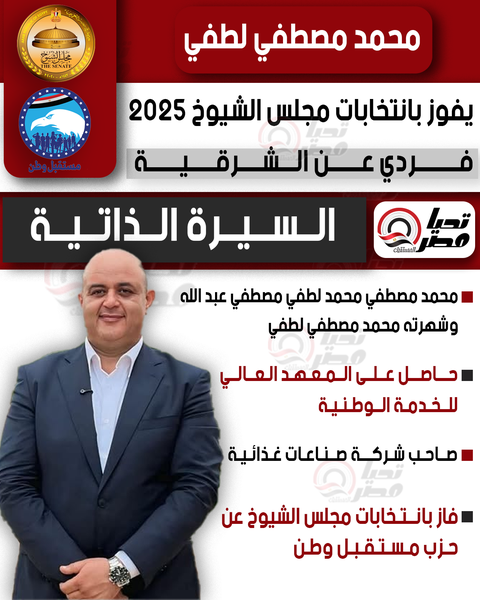 تحيا مصر ينشر السيرة الذاتية للنائب محمد مصطفي لطفي عضو مجلس الشيوخ 2025 بالنظام الفردي عن الشرقية
