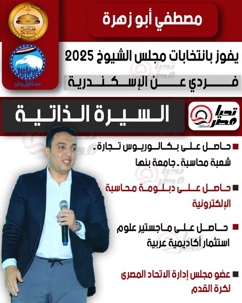 تحيا مصر ينشر السيرة الذاتية للنائب مصطفي أبو زهرة عضو مجلس الشيوخ 2025 بالنظام الفردي عن الإسكندرية