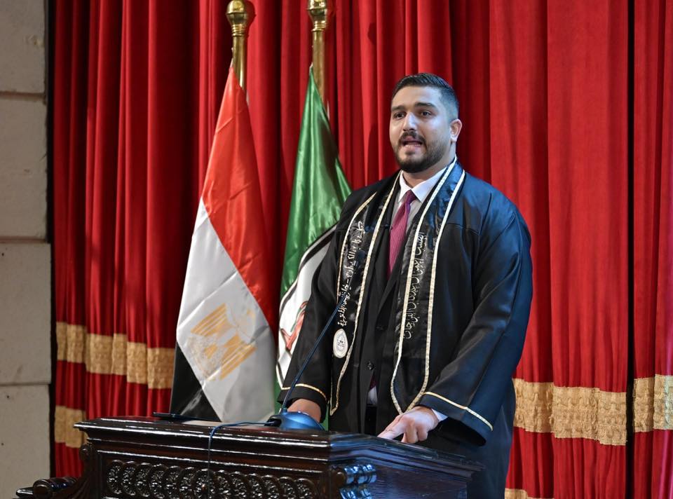 وقال الطبيب عمران عدنان، في كلمته ممثلًا عن الخريجين الوافدين، إن جامعة القاهرة العريقة يدرس بها الكثير من الطلاب الوافدين من مختلف الدول، وتخرج فيها الكثير من الأطباء الذين يقدمون الخدمات الطبية في بلادهم، مقدمًا الشكر لجمهورية مصر العربية ولجامعة القاهرة العريقة لاحتضانهم واحتوائهم خلال رحلتهم الدراسية.