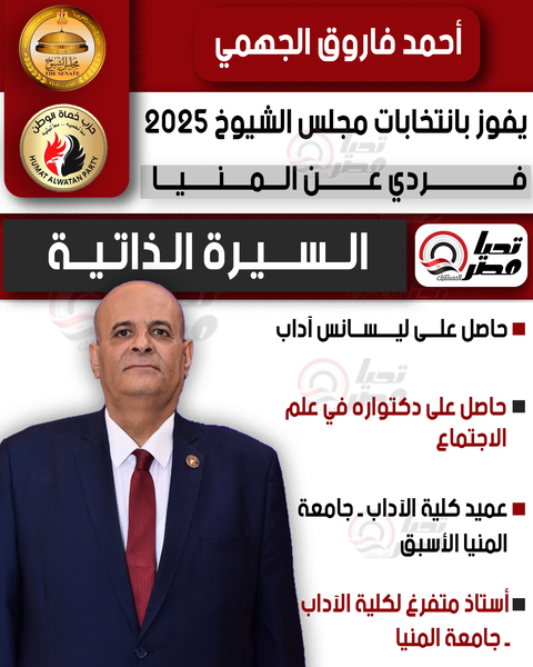 تحيا مصر ينشر السيرة الذاتية للنائب أحمد فاروق الهجمي عضو مجلس الشيوخ 2025 بالنظام الفردي عن المنيا