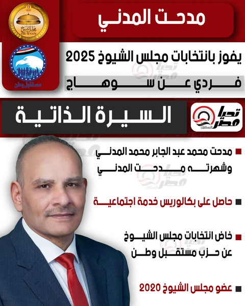 تحيا مصر ينشر السيرة الذاتية للنائب مدحت المدني عضو مجلس الشيوخ 2025 بالنظام الفردي عن سوهاج