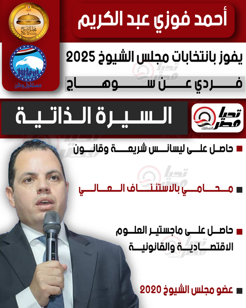 تحيا مصر ينشر السيرة الذاتية للنائب أحمد فوزي عبد الكريم عضو مجلس الشيوخ 2025 بالنظام الفردي عن سوهاج