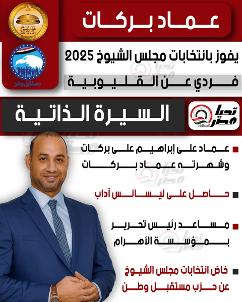 تحيا مصر ينشر السيرة الذاتية للنائب عماد بركات عضو مجلس الشيوخ 2025 بالنظام الفردي عن القليوبية