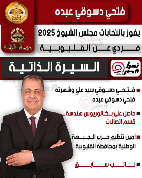 تحيا مصر ينشر السيرة الذاتية للنائب فتحي دسوق عبده عضو مجلس الشيوخ 2025 بالنظام الفردي عن القليوبية