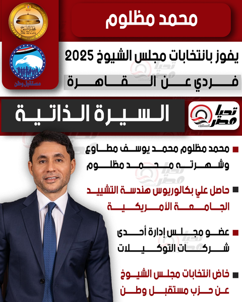 تحيا مصر ينشر السيرة الذاتية للنائب محمد مظلوم عضو مجلس الشيوخ 2025 بالنظام الفردي عن القاهرة