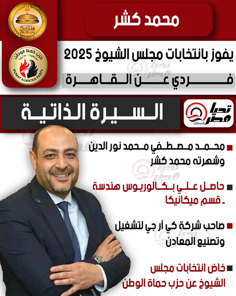 تحيا مصر ينشر السيرة الذاتية للنائب محمد كشر عضو مجلس الشيوخ 2025 بالنظام الفردي عن القاهرة