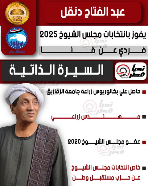 تحيا مصر ينشر السيرة الذاتية للنائب عبد الفتاح دنقل عضو مجلس الشيوخ 2025 بالنظام الفردي عن قنا