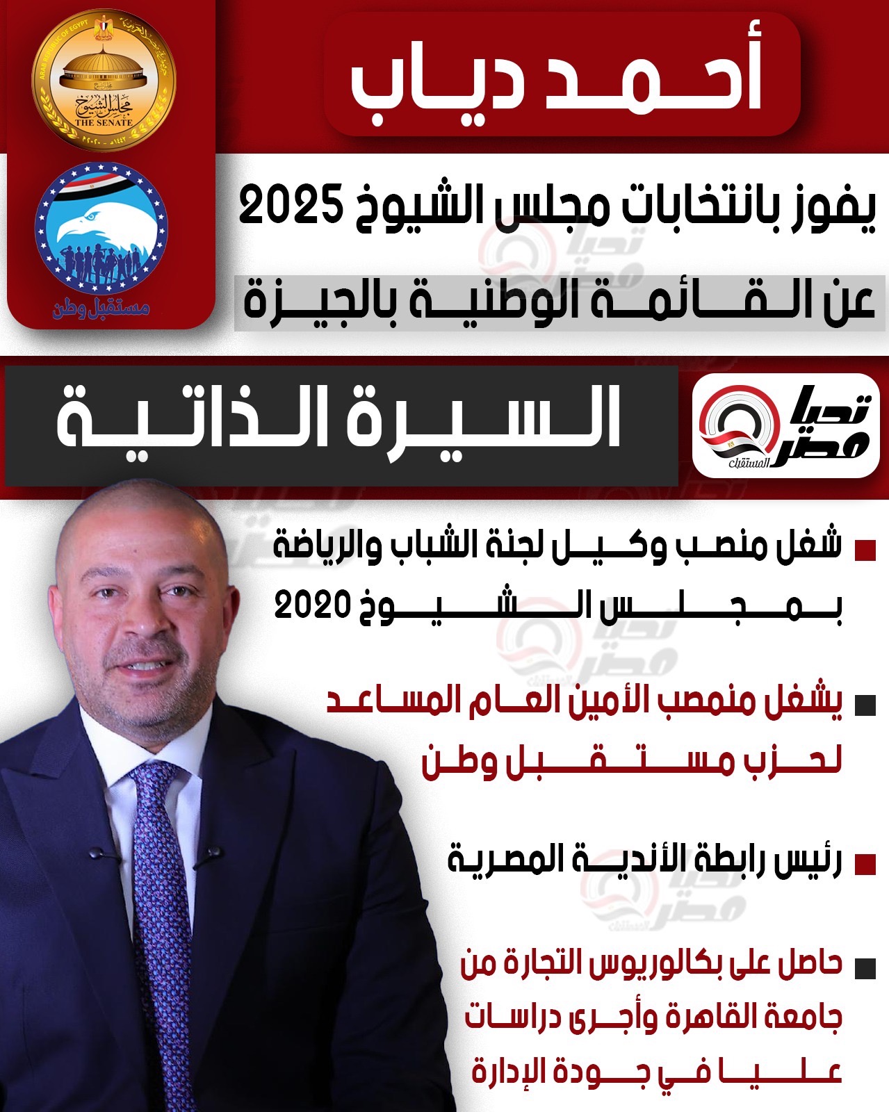 تحيا مصر ينشر السيرة الذاتية للنائب أحمد دياب عضو مجلس الشيوخ 2025