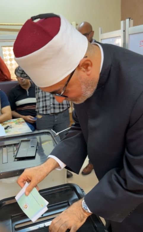 مفتي الجمهورية يدلي بصوته في انتخابات مجلس الشيوخ.. ويؤكد: الأعمال بمقاصدها وأي عمل يحقق الخير للبلد نؤجر عليه