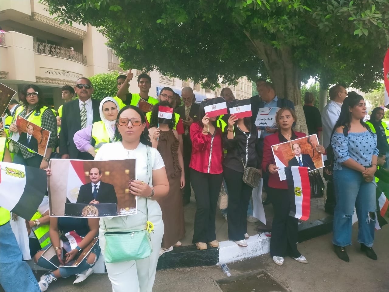مواطنون يوجهون التحية للرئيس السيسى أثناء التصويت بانتخابات مجلس الشيوخ ..ويرفعون صوره