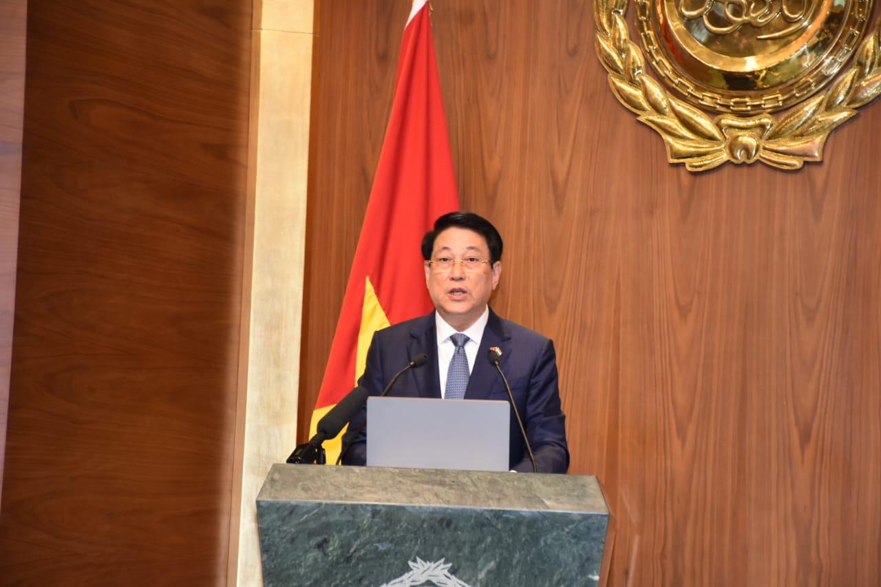 واردف:" قد نجحت فيتنام في حفاظ على الاستقرار السياسي وامني وسيادة الوطن، وتعزيز العدالة الاجتماعية، وتحسين مستوى معيشة المواطنين، وتقوية وحدة وطنية تشمل 54 مجموعة عرقية تتعايش بسلام وتناغم داخل اطار الوحدة الوطنية الكبرى. ووفقًا لمؤشر السعادة لعام 2025، تحتل فيتنام المرتبة 46 عالميًا".. وتربطنا علاقات دبلوماسية مع 194 دولة، ولدينا شراكة استراتيجية شاملة، واستراتيجية، وشاملة مع 37 منها، كما نشارك بفاعلية في أكثر من 70 منظمة دولية، ونحافظ على علاقات وثيقة مع 259 حزبًا سياسيًا في 119 دولة".