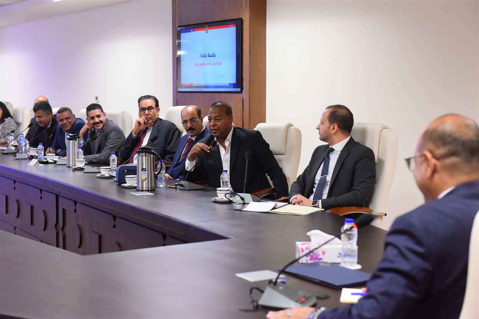 أكد الوزير على أن هذا الاجتماع بداية إجرائية لسرعة الانتهاء من إصدار 87 قرارًا وزاريًا تنفيذيًا خاصًا بالقانون، منها 68 قرارًا ستصدر عن وزارة العمل، فيما يتولى مجلس الوزراء ،ووزارتا العدل والصحة إصدار القرارات المتبقية، مؤكدًا أن الجهود متواصلة لضمان جاهزية التطبيق الكامل للقانون في كافة المؤسسات.