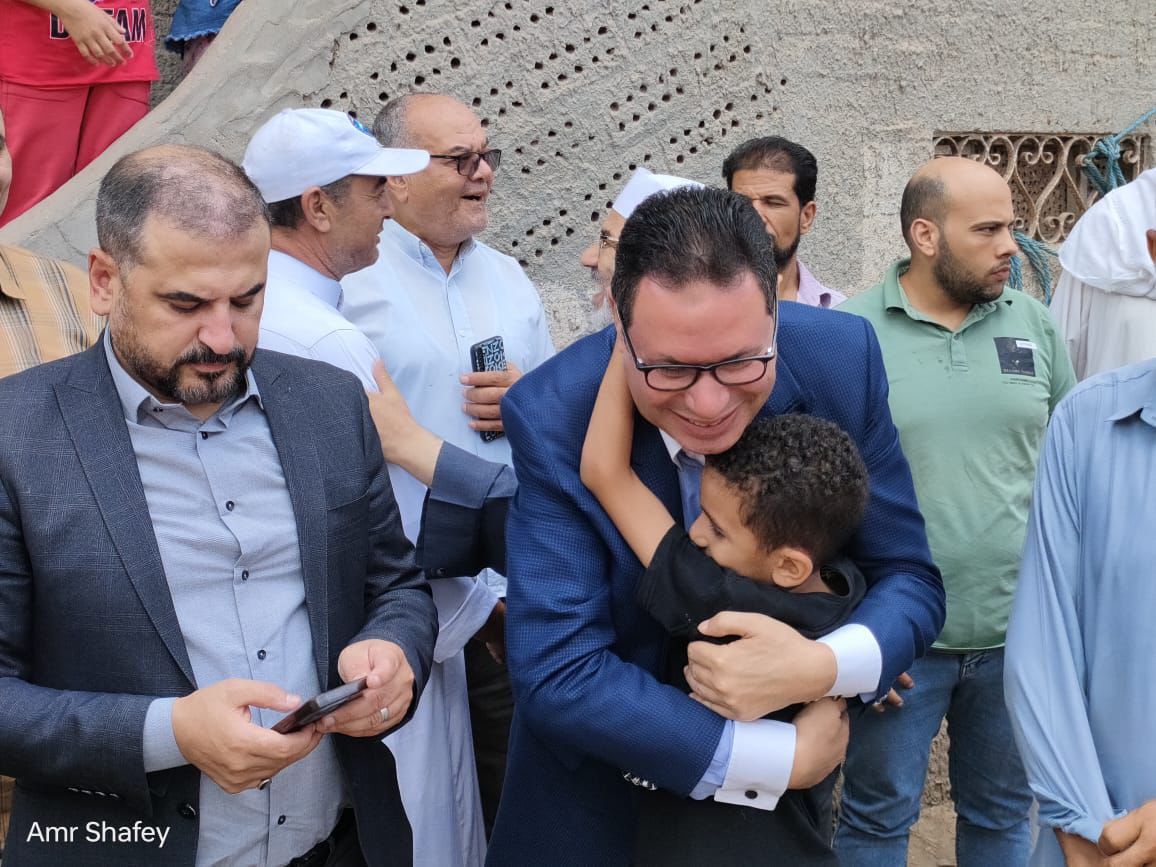 حشود خلف هشام الحصرى أثناء التصويت في انتخابات الشيوخ.... والنائب يؤكد: مشاركة المواطنين ضرورة وطنية