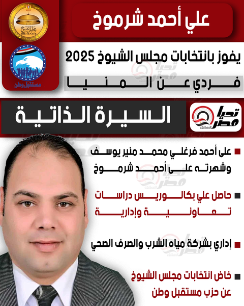 تحيا مصر ينشر السيرة الذاتية للنائب على أحمد شرموخ عضو مجلس الشيوخ 2025 بالنظام الفردي عن المنيا
