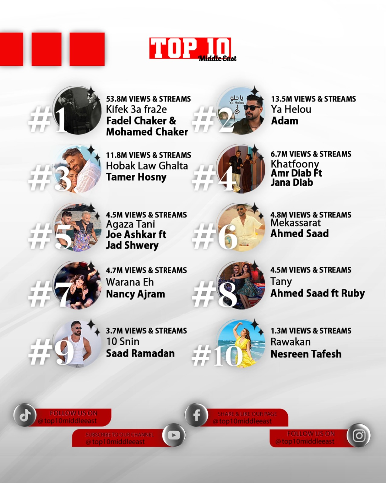 احتفلت النجمة نسرين طافش بإنجاز مميّز في مسيرتها الغنائية، بعد أن تمكنت أغنيتها الجديدة روقان من حجز مكانها ضمن قائمة أفضل 10 أغاني عربياً على يوتيوب بعد أقل من أسبوع على طرحها، محققة أكثر من مليون مشاهدة، وذلك حسبما أعلنت مجلة top10 middle east الموسيقية والترفيهية التي تصدر أسبوعياً.