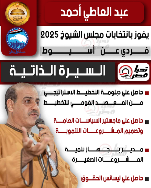 تحيا مصر ينشر السيرة الذاتية للنائب عبد العاطي أحمد عضو مجلس الشيوخ 2025 بالنظام الفردي عن أسيوط