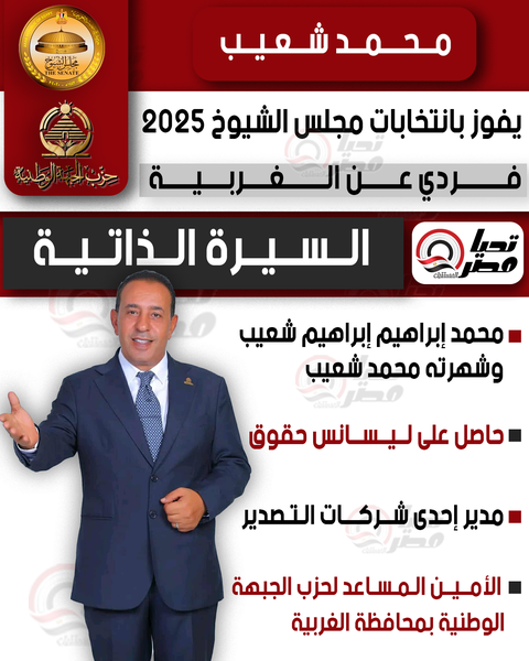 تحيا مصر ينشر السيرة الذاتية للنائب محمد شعيب عضو مجلس الشيوخ 2025
