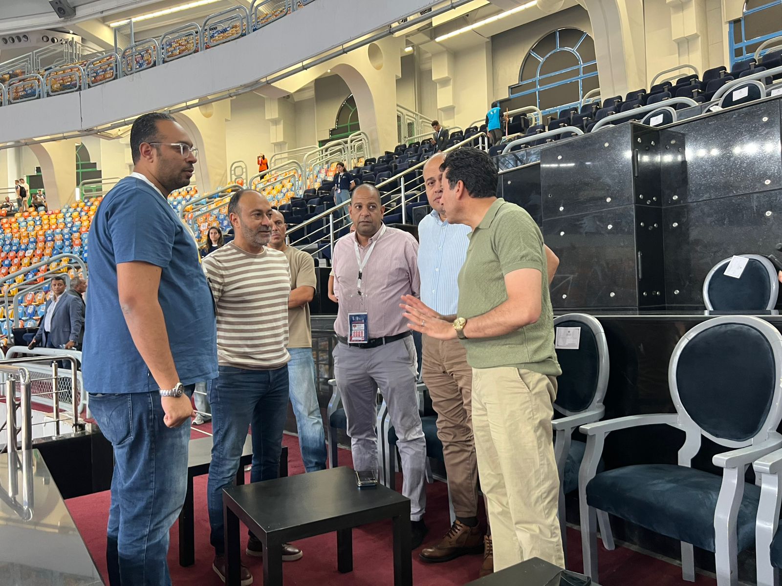 وتواجد في الجولة الدكتور أشرف البجيرمي رئيس قطاع الرياضة بوزارة الشباب والرياضة، الدكتور محمد الدمياطي، مدير عام الإدارة العامة للتكريم والحافز الرياضي، هيثم عز الدين نائب المدير التنفيذي للاتحاد المصري، محمد أبو اليزيد مدير مجمع الصالات المغطاة باستاد القاهرة الدولي، محمد مصطفى مدير صالة الرئيسية باستاد القاهرة الدولي من اللجنة المنظمة لبطولة العالم.