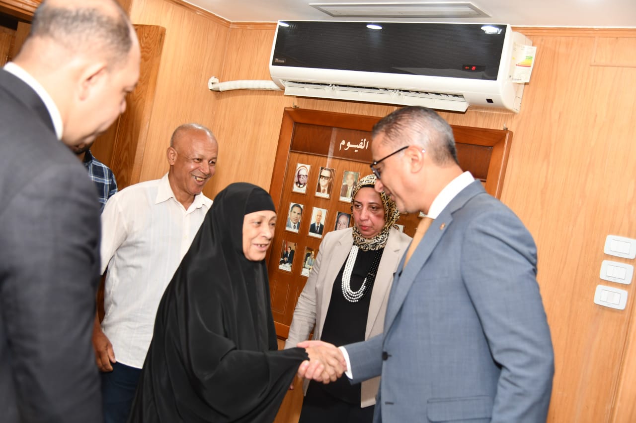 وخلال اللقاء، استمع محافظ الفيوم، لقصة كفاح السيدة، وما تحلت به من صبر في التعلم، حتى أصبحت قادرة على القراءة والكتابة، كما استمع المحافظ لمطلب السيدة ورغبتها في زيارة بيت الله الحرام، وعلي الفور استجاب المحافظ لمطلبها وقرر منحها رحلة عمرة، ووجه بتيسير اجراءات استخراج جواز سفر لها ولنجلها، كما قرر توفير فرصة عمل لأحد أحفادها بالقطاع الخاص، فيما قدمت أسرة السيدة الشكر لمحافظ الفيوم، لإصراره علي تكريمها وتسليمها شهادة محو الأمية، واستجابته الفورية لمطالب الأسرة.