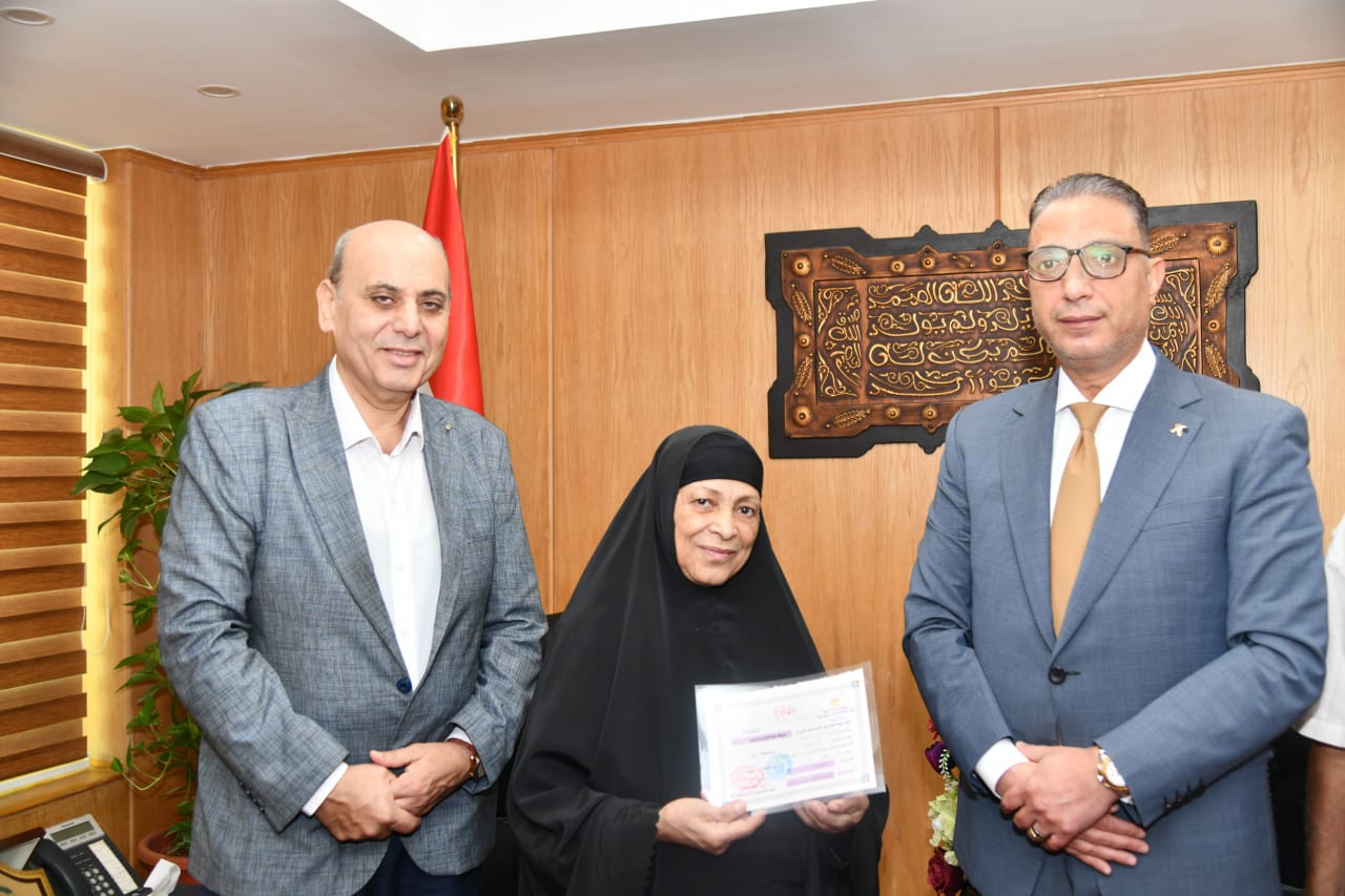 عمرة وفرصة عمل لحفيدها.. محافظ الفيوم يُكرم السيدة "مبروكة" لحصولها على شهادة محو الأمية