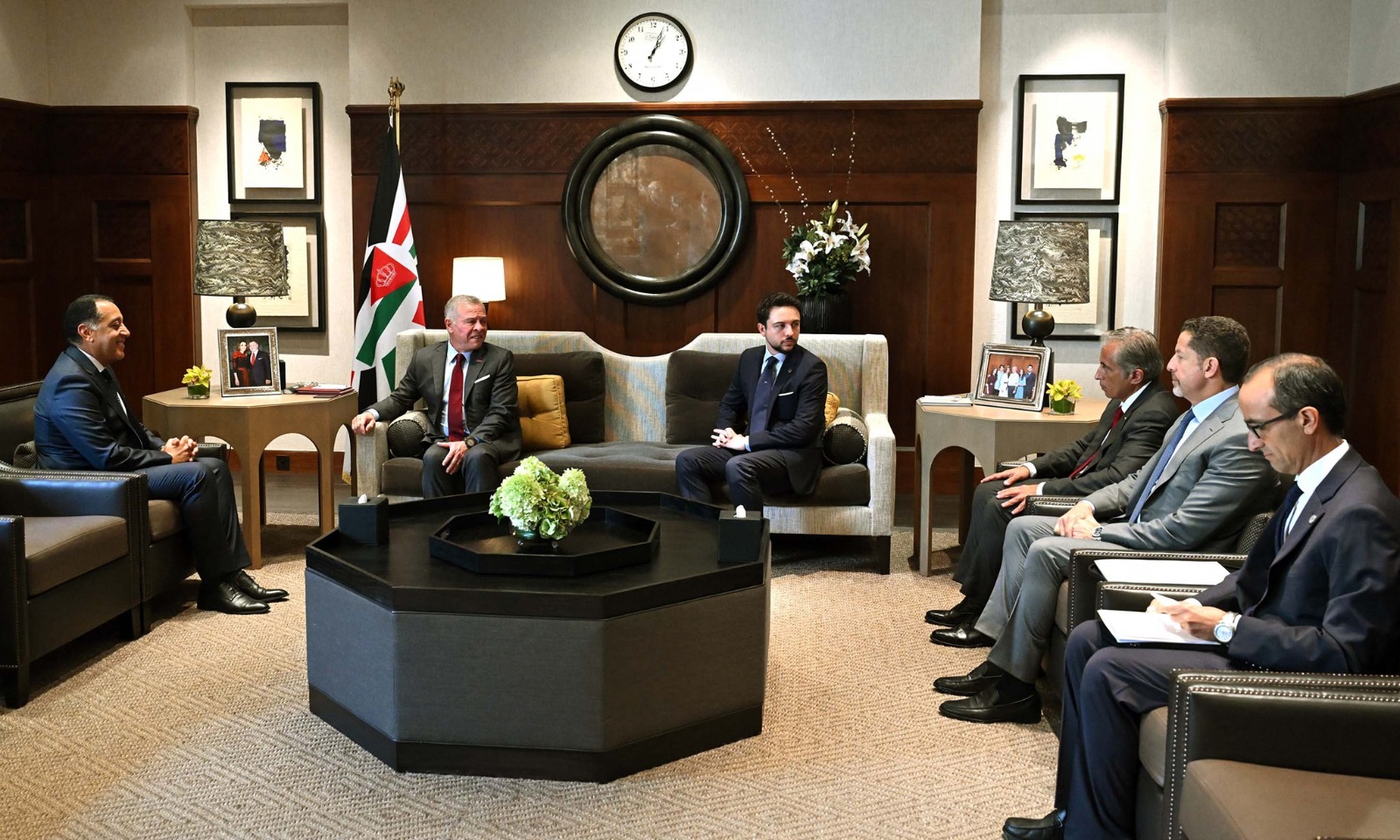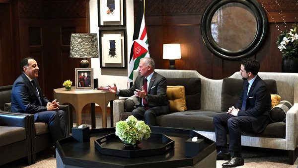 استقبل اليوم جلالة الملك عبد الله الثاني ابن الحسين، عاهل المملكة الأردنية الهاشمية، بالديوان الملكي بالحسينية، الدكتور مصطفى مدبولي، رئيس مجلس الوزراء، بحضور صاحب السمو الملكي الأمير الحسين بن عبد الله الثاني، ولي العهد، والدكتور جعفر حسان، رئيس الوزراء الأردنى، وذلك في إطار الزيارة التي يقوم بها الدكتور مصطفى مدبولي إلى العاصمة الأردنية عمّان لرئاسة اجتماعات الدورة الثالثة والثلاثين للجنة العليا المصرية الأردنية المشتركة.