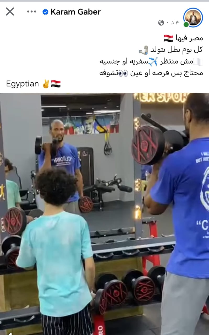 وقال جابر في رسالته: "مصر فيها كل يوم بطل بيتولد، مش منتظر سفرية أو جنسية، محتاج بس فرصة أو عين تشوفه"، في إشارة إلى أهمية الاستثمار في المواهب الرياضية داخل البلاد.