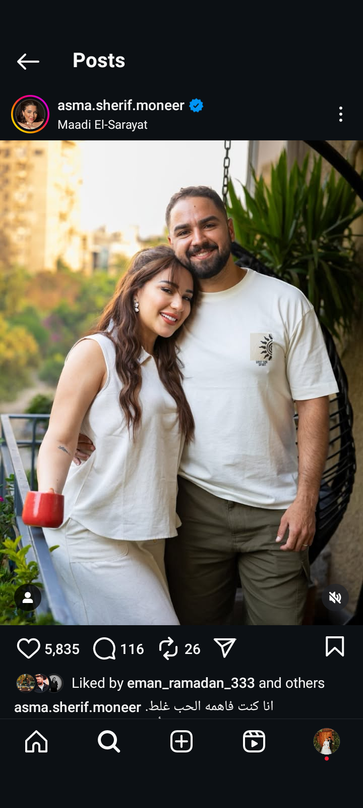 تحدثت الفنانة اسما شريف منير عن معرفتها بمعنى الحب الحقيقي عندما قابلت زوجها الحالي، موجهة له الشكر على طمئنة قلبها من ناحيته، وذلك في منشور رصده موقع تحيا مصر عبر حسابها الرسمي بموقع تبادل الصور والفيديوهات انستجرام.