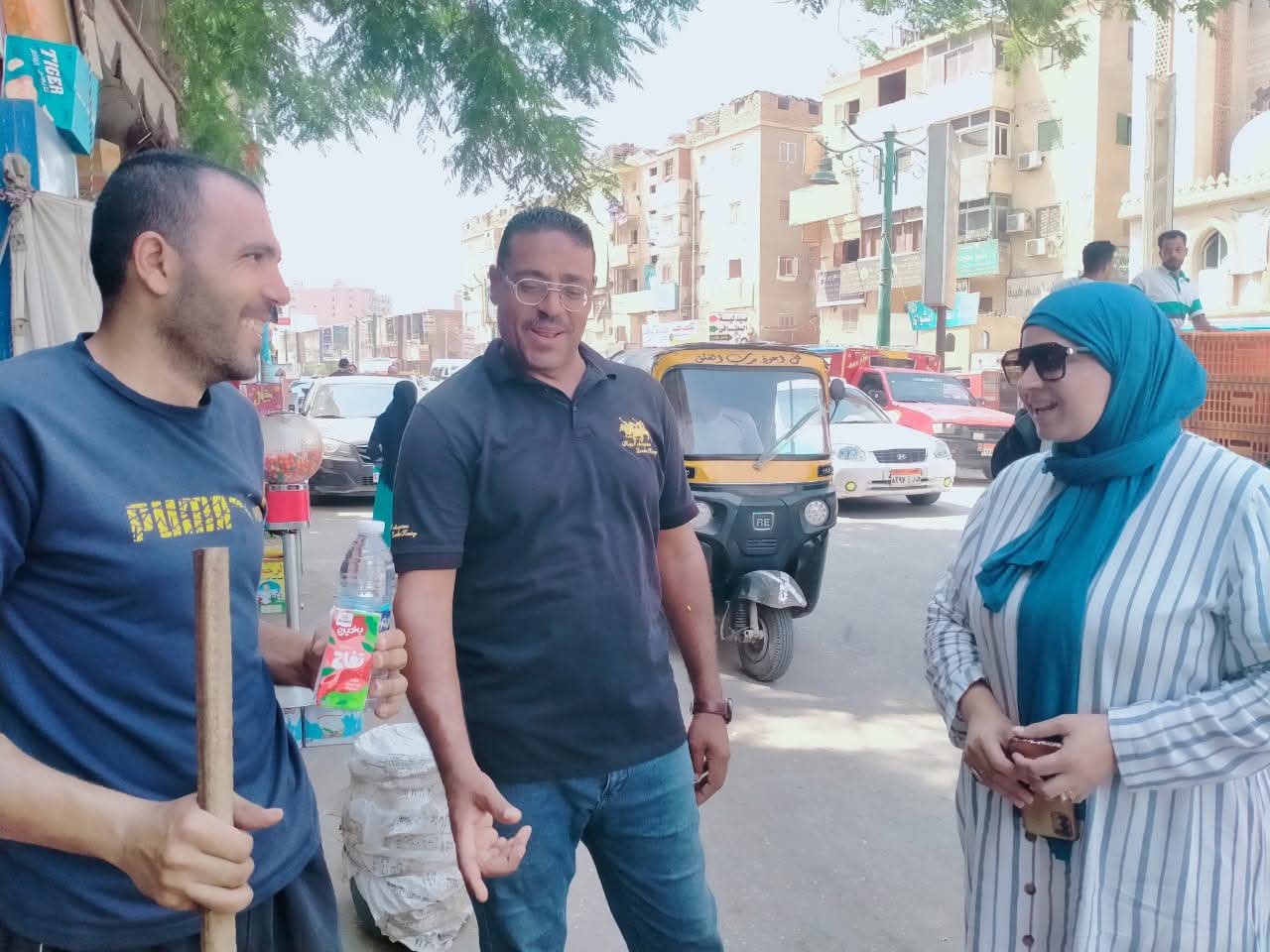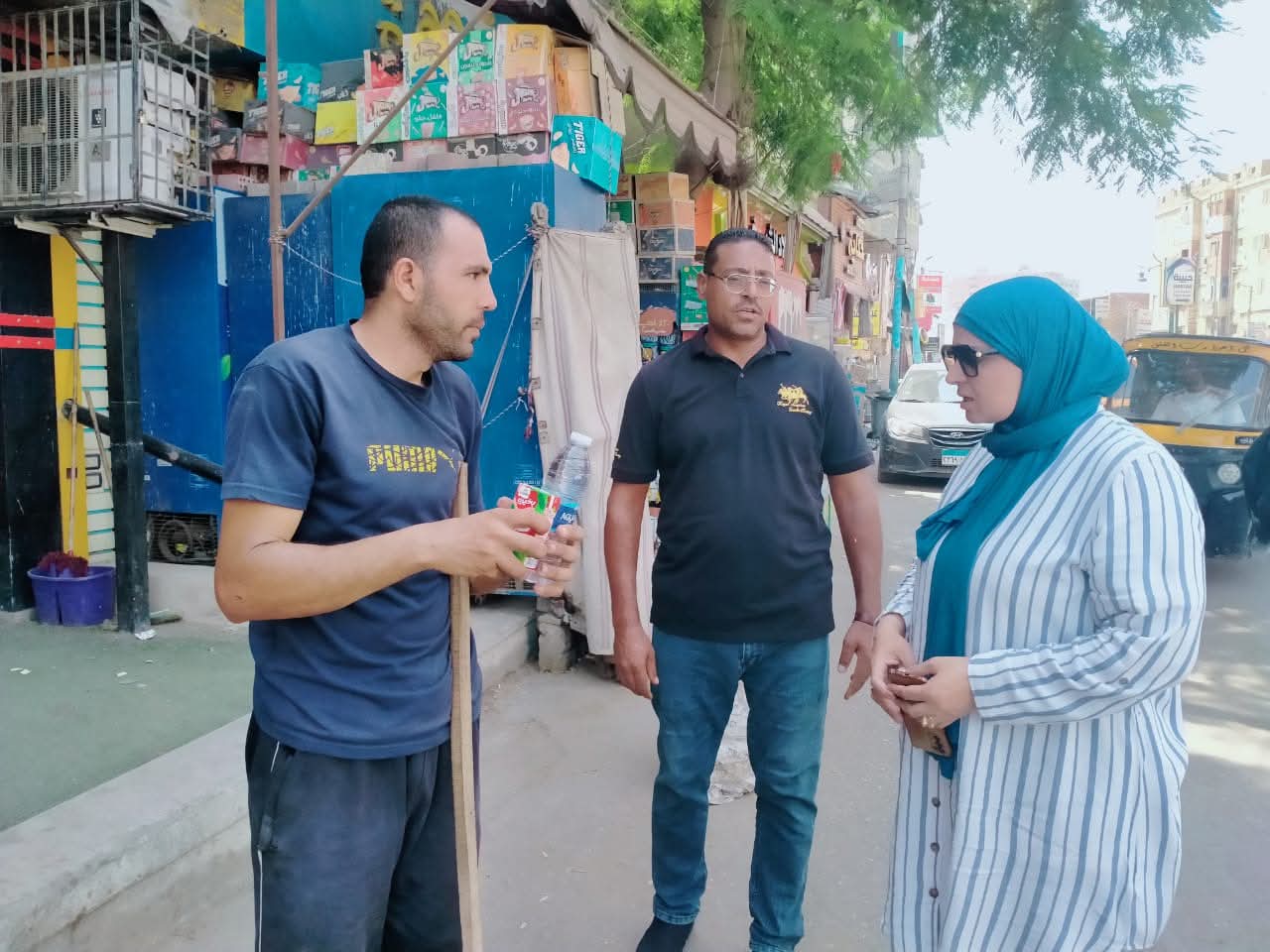كما قامت بتوزيع زجاجات مياه باردة وعصائر على فريق عمل تحسين البيئة، وعمال النظافة، وفريق الإشغالات، بهدف تعويض السوائل المفقودة من خلال التعرق، والحفاظ على درجة حرارة الجسم، بما يضمن استمرار العمل بكفاءة مع حماية صحة العاملين.