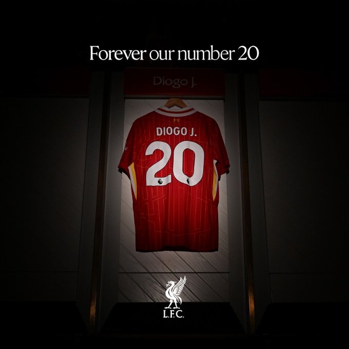 وجاء في بيان نادي ليفربول، سيتوقف نادي ليفربول عن استخدام القميص رقم 20 في جميع درجاته تكريمًا وتخليدًا لذكرى ديوغو جوتا.