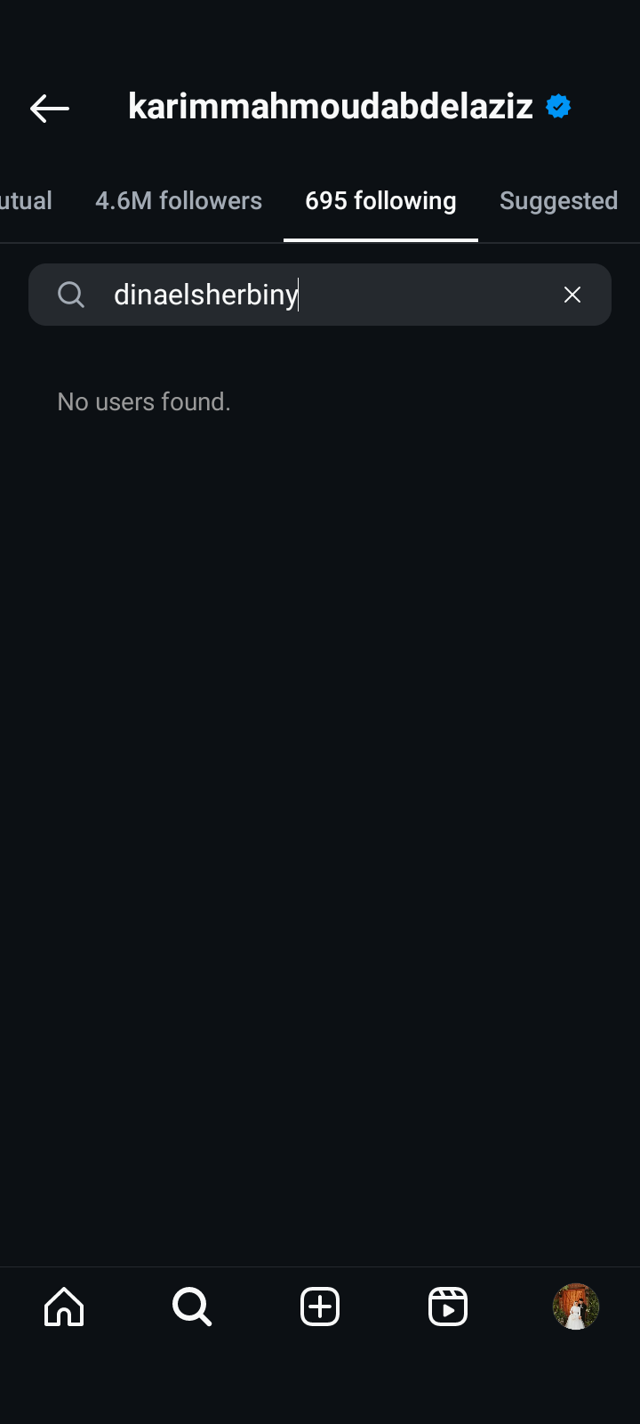 تفاجأ الجمهور منذ قليل بقيام كلا من الفنان كريم محمود عبد العزيز والفنانة دينا الشربيني بإلغاء متابعة بعضهم على موقع تبادل الصور والفيديوهات انستجرام، وذلك بعد قيام كريم محمود عبد العزيز بنشر صورة له مع زوجته آن رفاعي.