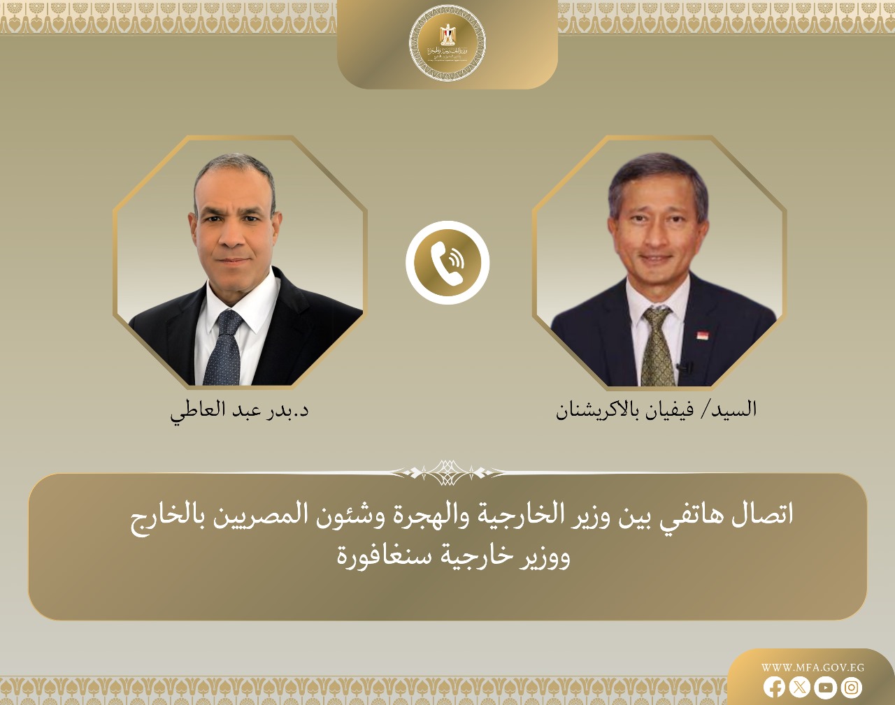 أكد د. بدر عبد العاطي وزير الخارجية والهجرة، أن سنغافورة خامس أكبر مستثمر أجنبي في السوق المصرية، وجاء ذلك خلال مكالمة هاتفية تلقاها من فيفيان بالاكريشنان، وزير خارجية سنغافورة، في إطار مواصلة التنسيق والتشاور بين البلدين، وتعزيز العلاقات الثنائية التي تربط مصر وسنغافورة.