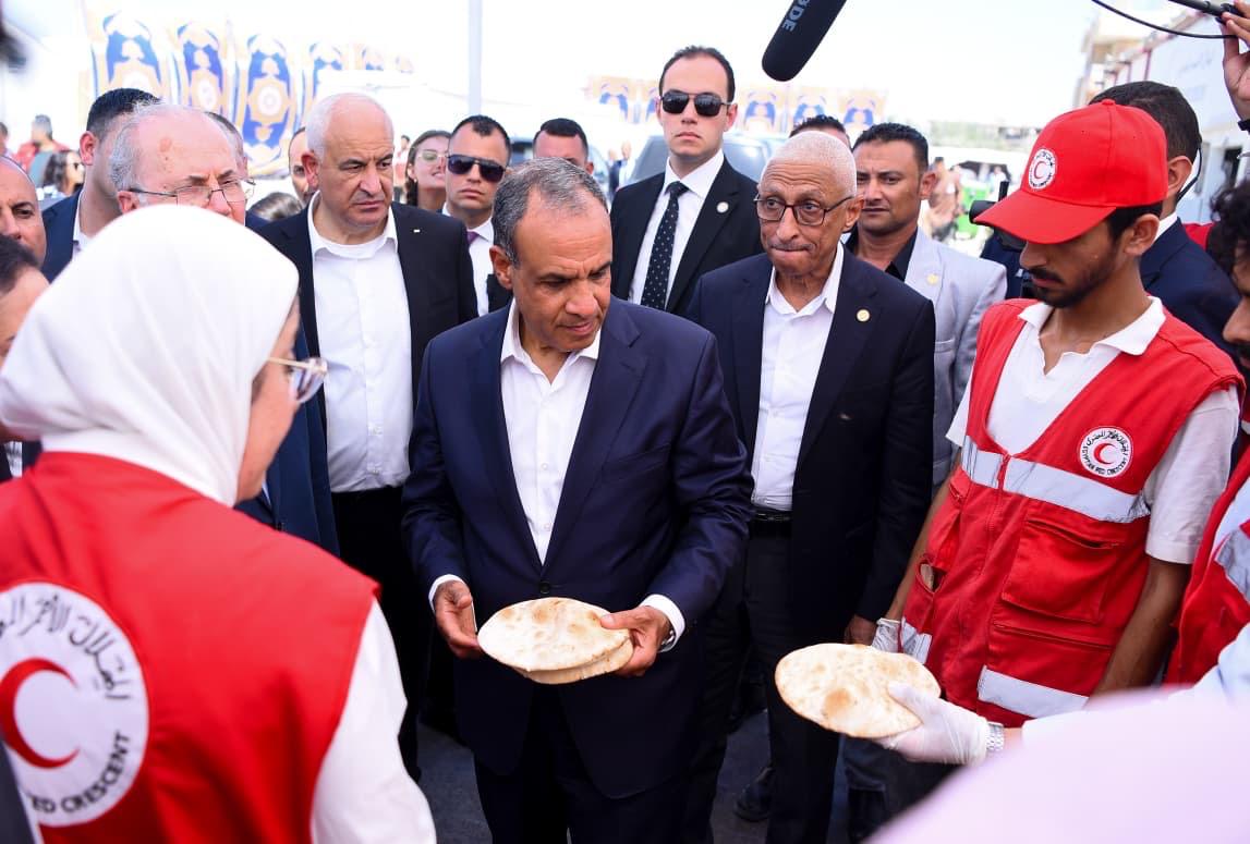 وزير الخارجية ورئيس الوزراء الفلسطيني يزوران مركز الإمداد الغذائي "المطبخ الإنساني" بالشيخ زويد|صور