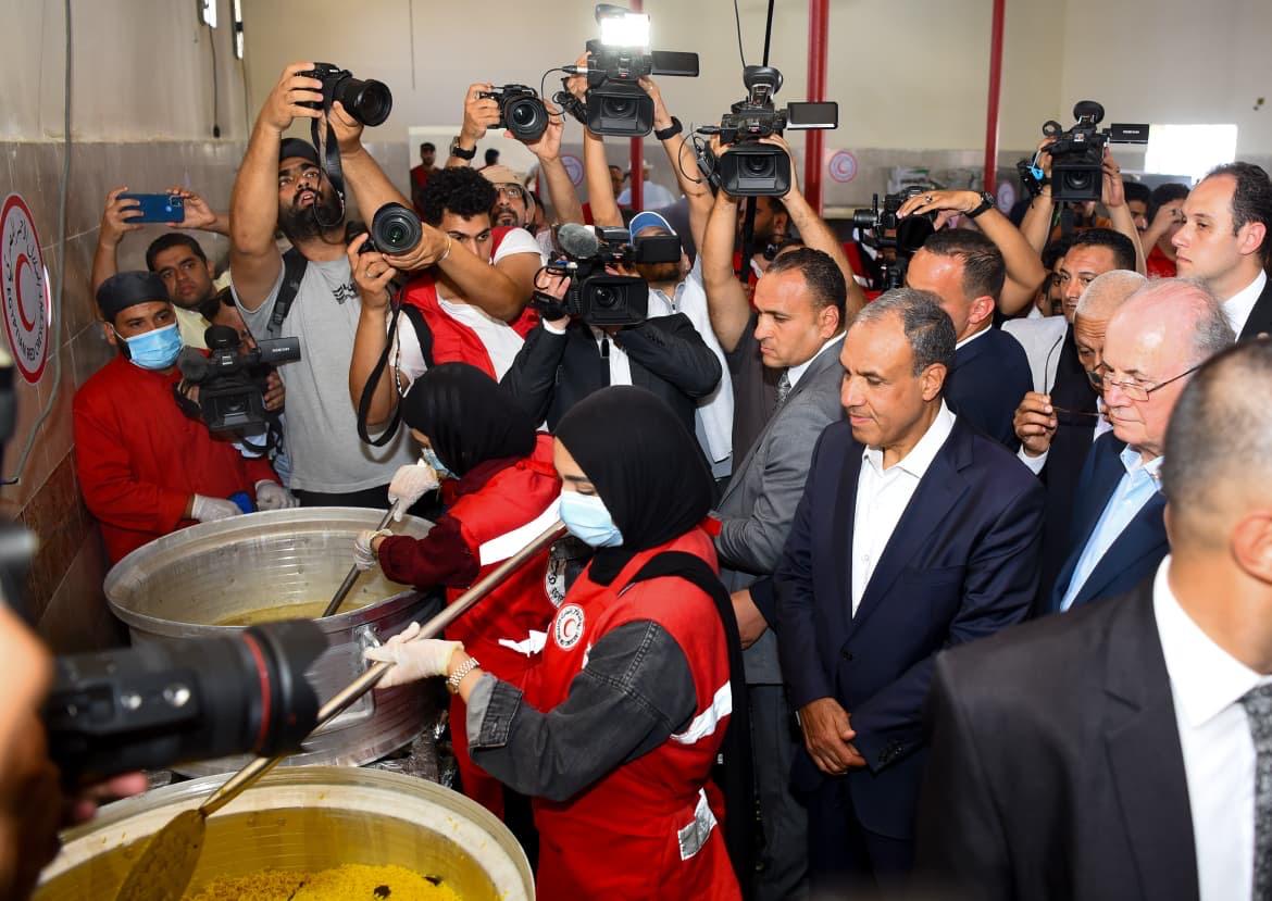 تفقد د. بدر عبد العاطى وزير الخارجية ود. محمد مصطفى، رئيس الوزراء الفلسطيني، اليوم الاثنين، مركز الإمداد الغذائي "المطبخ الإنساني" التابع لجمعية الهلال الأحمر المصري بالشيخ زويد، وذلك خلال زيارتهما لمدينة العريش ومعبر رفح، وبحضور د. مايا مرسي وزيرة التضامن الاجتماعي.