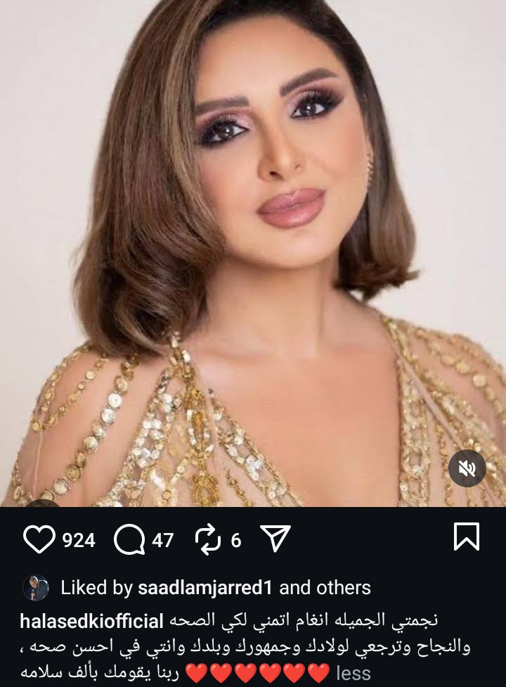 ونشرت هالة صدقي منشور عبر حسابها الرسمي بموقع تبادل الصور والفيديوهات انستجرام ورصده موقع تحيا مصر، ارفقت به صورة انغام وعلقت عليه، قائلة: "نجمتى الجميلى انغام، اتمنى لكي الصحة والنجاح وترجعي لولادك وجمهورك وبلدك وانتي في أحسن صحة.. ربنا يقومك بألف سلامة.