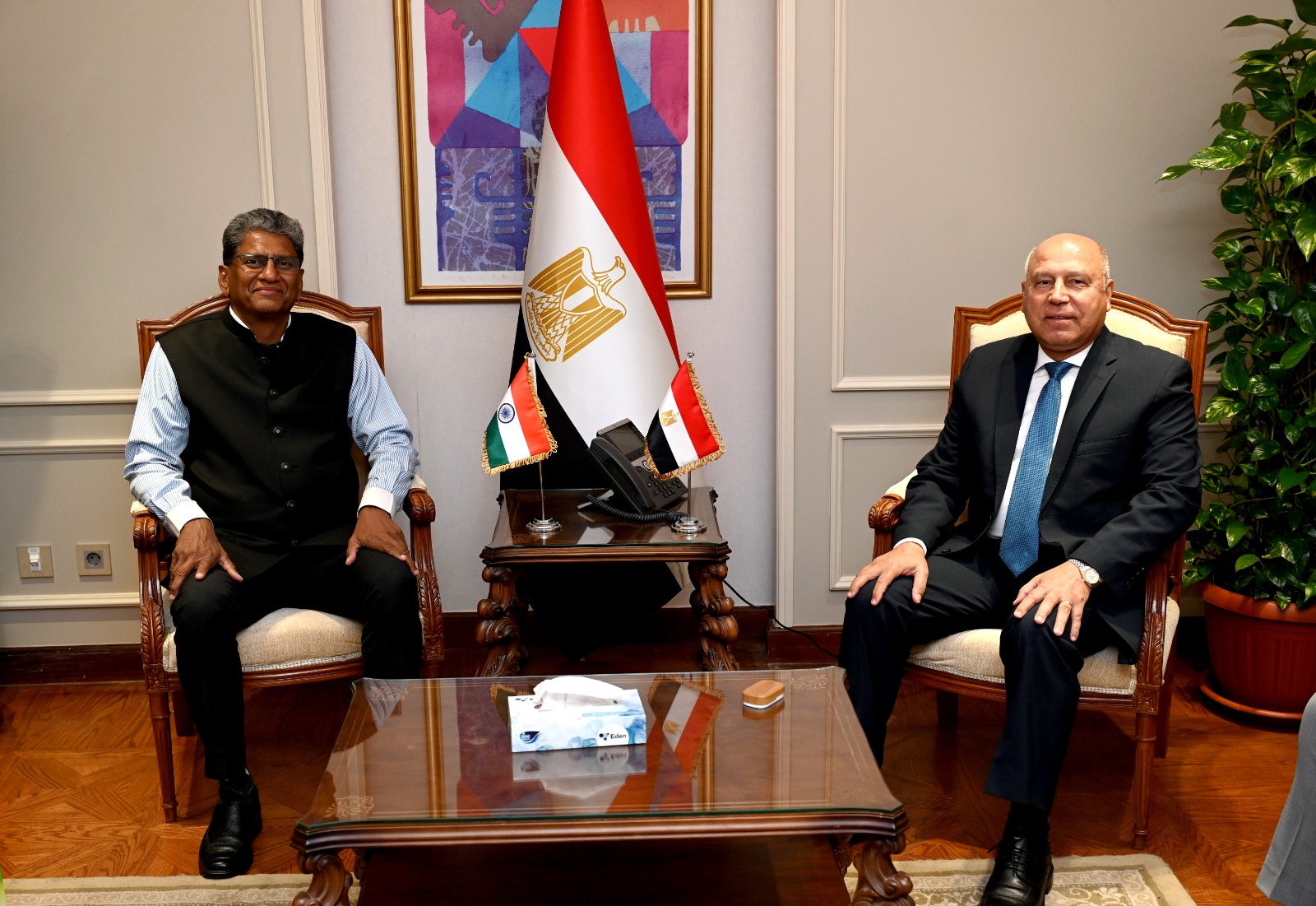 استقبل الفريق مهندس كامل الوزير، نائب رئيس مجلس الوزراء للتنمية الصناعية وزير الصناعة والنقل، السيد سوريش كى ريدي، سفير الهند بالقاهرة، في لقاء تناول سبل تعزيز التعاون الاقتصادي بين البلدين واستعراض الفرص الاستثمارية الواعدة في مجالي الصناعة والنقل، ويأتي هذا اللقاء في إطار جهود وزارتي الصناعة والنقل لدعم الاقتصاد القومي وتعزيز الشراكات الاقتصادية الدولية خاصة مع المناخ الاستثماري الواعد في مصر.