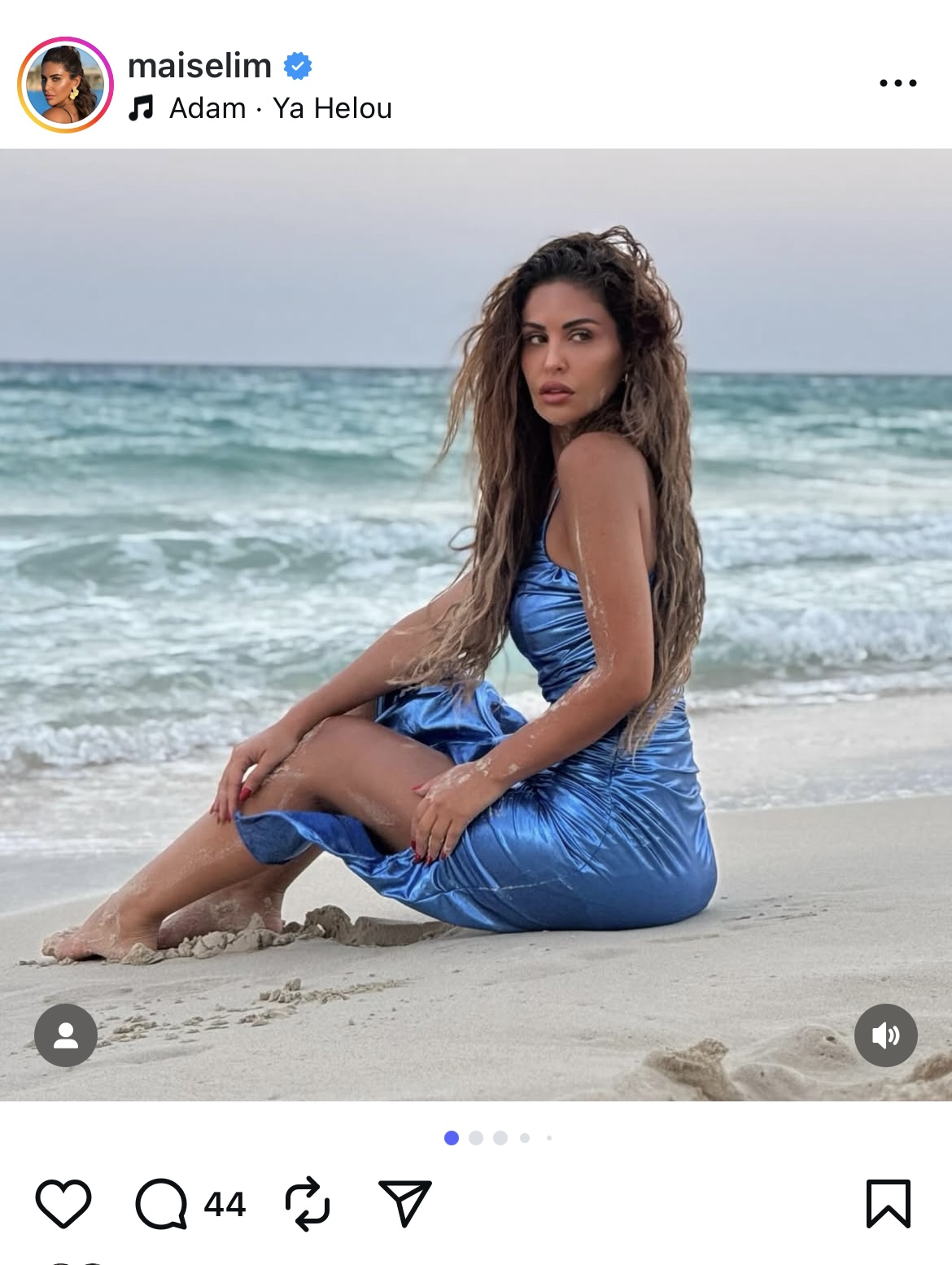 شاركت الفنانة مي سليم، جمهورها ومتابعيها، صورا جديدة لها من على البحر، وذلك خلال إجازتها الصيفية، وذلك عبر موقع الفيديوهات والصور إنستجرام.