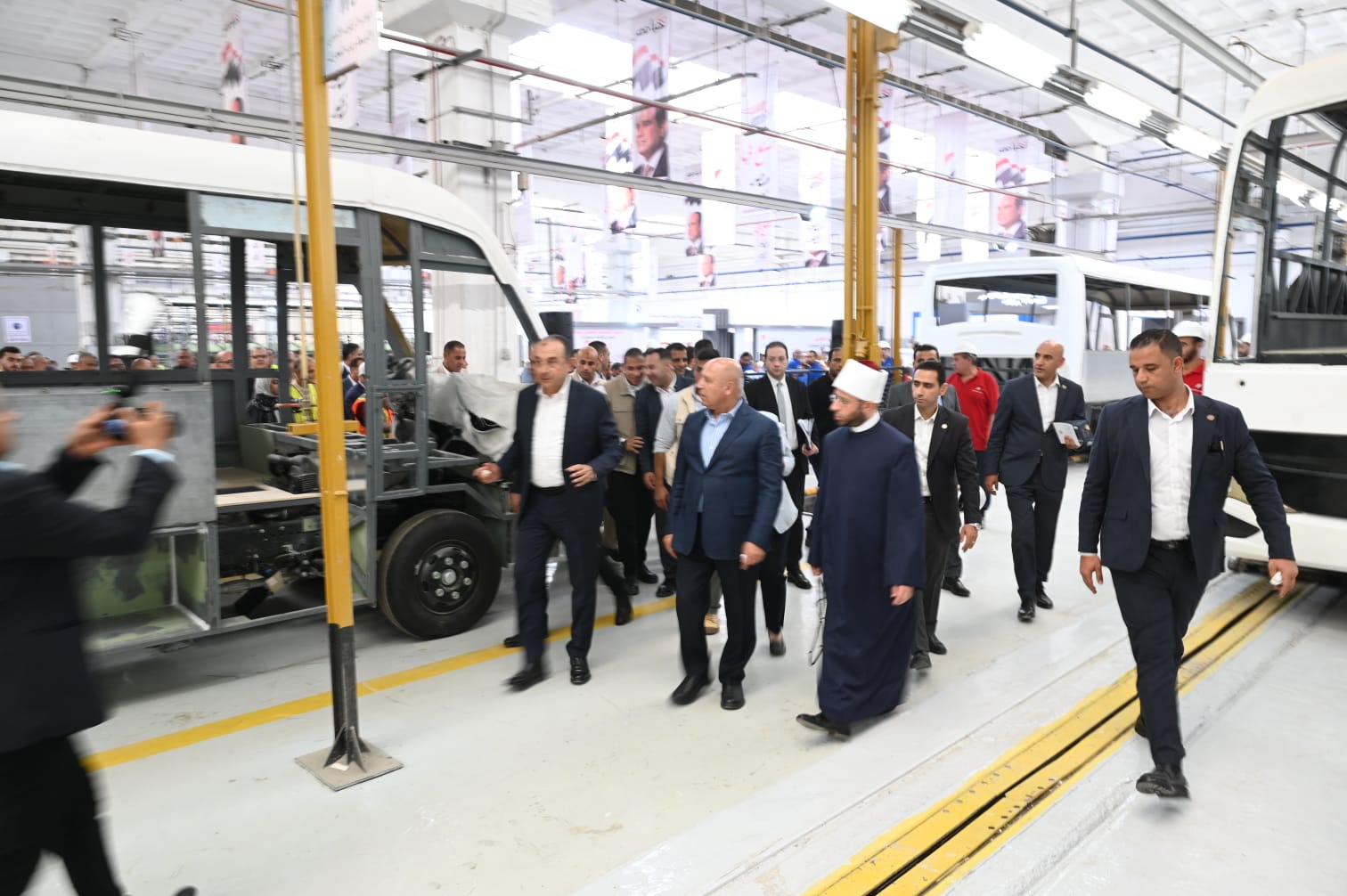 كما تفقد الوزراء مصنع الأتوبيس والذي تم إعادة تشغيله نهاية العام الماضي، وينتج الأتوبيس السياحي (نصر سكاي) بطول 12 متر وفق أحدث المعايير العالمية، وكذلك الميني باص بطول 8 متر (نصر ستار) ويشمل خطوط الهياكل والتجميع والتجليد والتشطيب، والمصنع مقام على مساحة 40 ألف متر مربع، حيث تمت إضافة بعض معدات التصنيع المتطورة مثل الليزر والبلازما وماكينات جسم الأتوبيس بالكامل وتبلغ نسبة المكون المحلي للأتوبيس السياحي 63% وهناك طرازات أخرى جاري العمل عليها من الأتوبيسات الصديقة للبيئة والتي تعمل بالكهرباء أو الغاز الطبيعي (نصر جرين)، حيث تم التأكيد على ضرورة بذل مزيد من الجهود لتصنيع المكونات التي يتيسر إنتاجها محلياً مثل الجوانب المعدنية للأتوبيس.