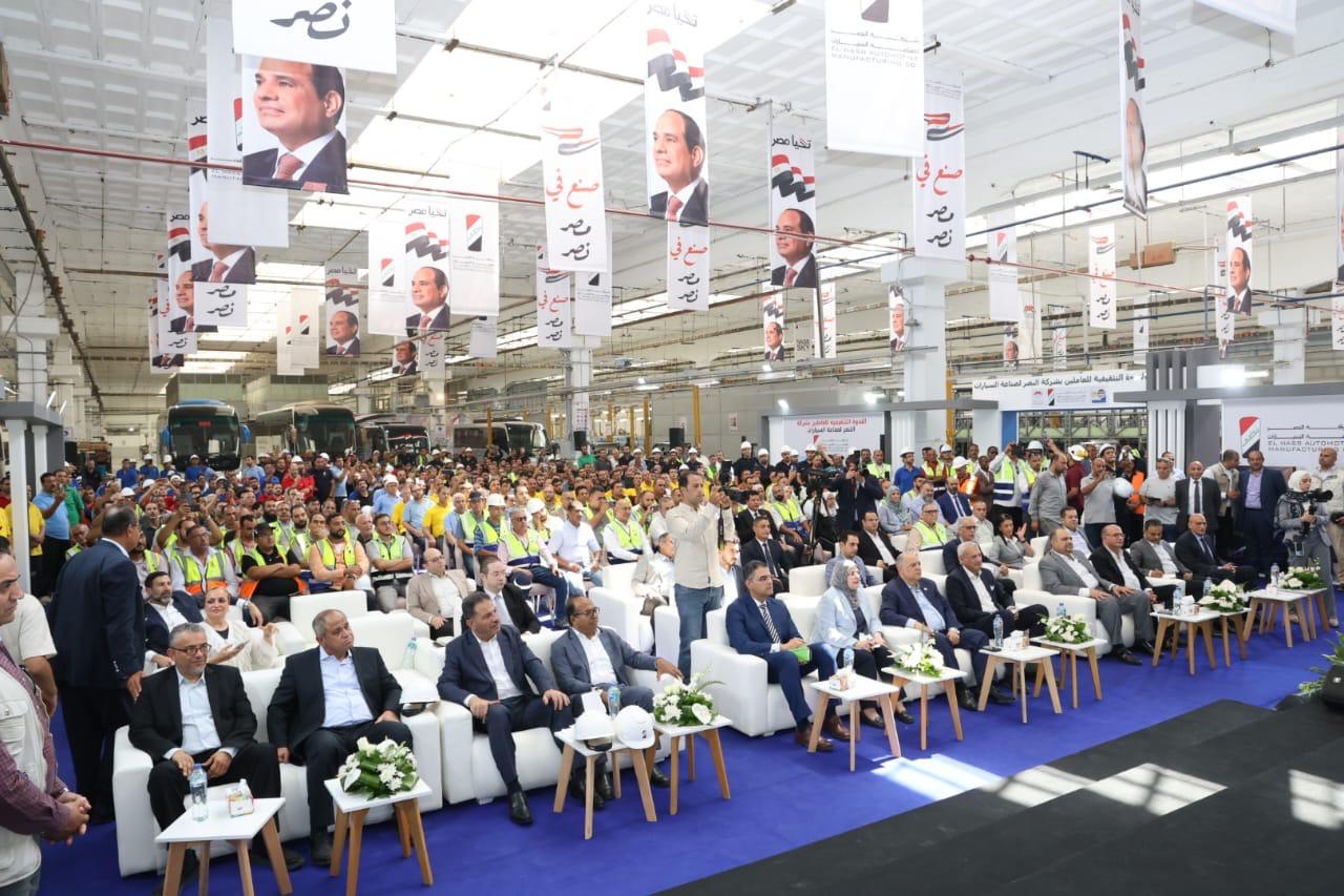 ومن جانبه رحب المهندس محمد شيمي وزير قطاع الأعمال العام، بالفريق كامل الوزير نائب رئيس مجلس الوزراء للتنمية الصناعية وزير الصناعة والنقل، والدكتور أسامة الأزهري وزير الأوقاف، والسيد محمد جبران وزير العمل، كما وجه التحية للعاملين بشركة النصر للسيارات، مؤكدًا اعتزازه باللقاءات المستمرة معهم والوجود بينهم، في هذا الصرح الصناعي العريق، إحدى القلاع الراسخة للصناعة الوطنية واسم من ذهب في ذاكرة المصريين. وأكد أن اسم "النصر" لم يكن يومًا مجرد علامة تجارية، بل ظل دائمًا عنوانًا لإرادة المصريين ورمزًا للقدرة على البناء والتحدي والانتصار على الصعاب وأضاف أنه بفضل دعم الدولة بقيادة فخامة الرئيس عبد الفتاح السيسي، وبتفاني العاملين وإخلاصهم، نعيد إحياء هذا الكيان العريق بعد سنوات طويلة من التوقف. وأشار الوزير إلى أن عجلة الإنتاج قد عادت للدوران بالفعل، حيث بدأت خطوط الشركة في إنتاج الأتوبيسات التي تحمل علامة "النصر" بفخر، مثل "نصر سكاي" والميني باص "نصر ستار"، بمكوّن محلي مرتفع، مع العمل على إنتاج أتوبيسات صديقة للبيئة تعمل بالغاز الطبيعي والكهرباء، وإضافة طرازات وأحجام مختلفة من المركبات لتلبية احتياجات السوق.