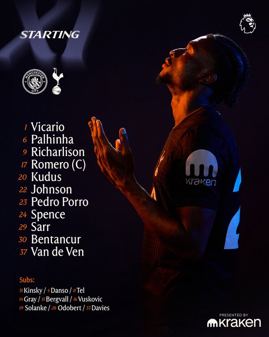 - تشكيل توتنهام هوتسبير الرسمي ضد مانشستر سيتي في الدوري الإنجليزي الممتاز