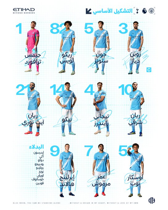 - التشكيل الرسمي لمباراة مانشستر سيتي وتوتنهام هوتسبير في الدوري الإنجليزي الممتاز